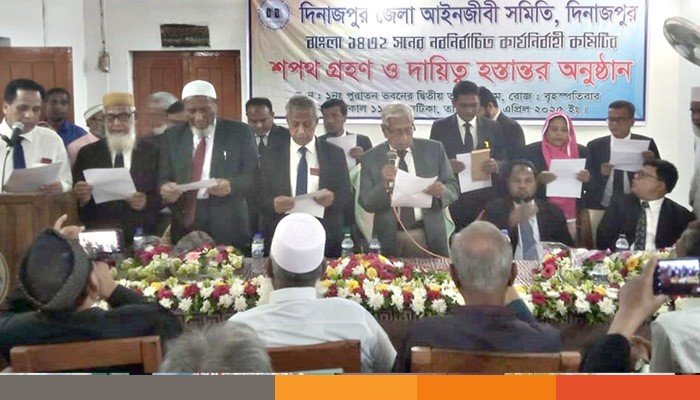 দিনাজপুর জেলা আইনজীবী সমিতির নব নির্বাচিত কমিটির শপথ গ্রহণ