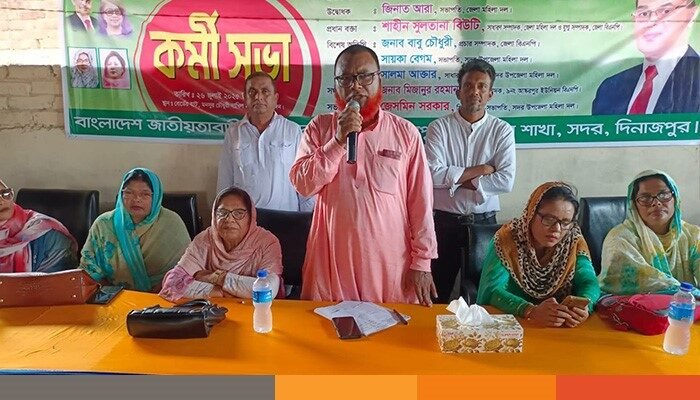সদর উপজেলা মহিলাদলের সিনিয়র সহ-সভাপতি জেসমিন সরকারের সভাপতিত্বে কর্মীসভায় প্রধান অতিথির বক্তব্য রাখেন দিনাজপুর জেলা বিএনপি’র সহ-সভাপতি, দিনাজপুর চেম্বার অফ কমার্স এন্ড ইন্ডাস্ট্রি’র সভাপতি ও আস্করপুর ইউনিয়ন পরিষদের চেয়ারম্যান আলহাজ্ব আবু বকর সিদ্দিক।