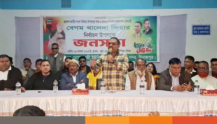 দিনাজপুর সদর উপজেলার চেহেলগাজী ইউনিয়নে বেগম খালেদা জিয়ার নির্বাচন উপলক্ষ্যে আয়োজিত জনসভায় বক্তারা বলেন, দিনাজপুর সদর আসনের প্রার্থী দেশনেত্রী বেগম খালেদা জিয়া বিপুল ভোটে বিজয়ী হবে। তাই আগামী জাতীয় নির্বাচনে প্রিয় নেত্রীকে পবিত্র আমানত মনে করে আমরা দায়িত্ব পালন করবো। আমরা বাড়ি বাড়ি গিয়ে ভোট চাইবো।