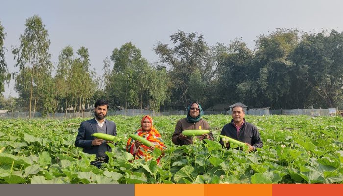 দিনাজপুর খানসামায় কৃষি বিভাগের পরামর্শে বদলে গেছে নিরাপদ পদ্ধতিতে লাউ চাষের চিত্র: লাভবান চাষী