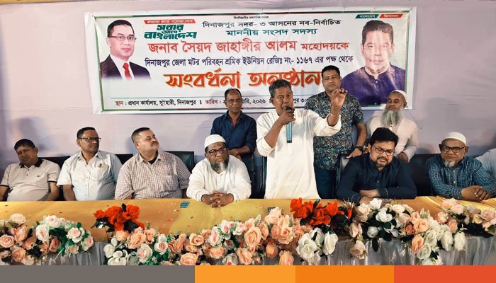 রবিবার (২২ ফেব্রুয়ারি ২০২৬) বিকেলে দিনাজপুর জেলা মোটর পরিবহন শ্রমিক ইউনিয়নের পক্ষ থেকে তাঁকে দেয়া সংবর্ধনা অনুষ্ঠানে সৈয়দ জাহাঙ্গীর আলম এমপি এসব কথা বলেন।