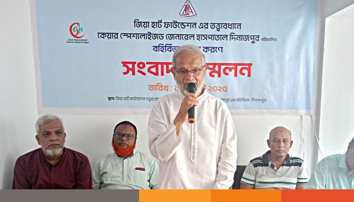 জিয়া হার্ট ফাউন্ডেশনের তত্ত্বাবধানে কেয়ার স্পেশালাইজড জেনারেল হাসপাতাল দিনাজপুর পরিচালিত বহির্বিভাগ চালুকরণে ১৫ জুলাই ২০২৫ মঙ্গলবার বেলা সাড়ে ১১টায় জিয়া হার্ট ফাউন্ডেশন চত্বরের কেয়ার স্পেশালাইজড জেনারেল হাসপাতাল দিনাজপুরের বর্হিবিভাগে সংবাদ সম্মেলন করেছে কর্তৃপক্ষ।