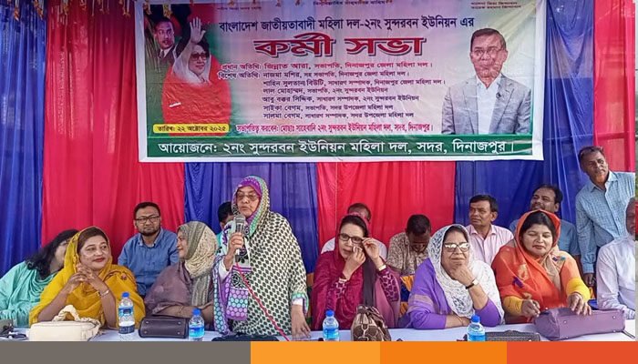 দিনাজপুর সদর উপজেলার ২ নং সুন্দরবন ইউনিয়নের সদরপুর বালিকা সরকারি প্রাথমিক বিদ্যালয় মাঠে ইউনিয়ন মহিলা দল আয়োজিত কর্মী সভায় অনুষ্ঠিত হয়েছে।