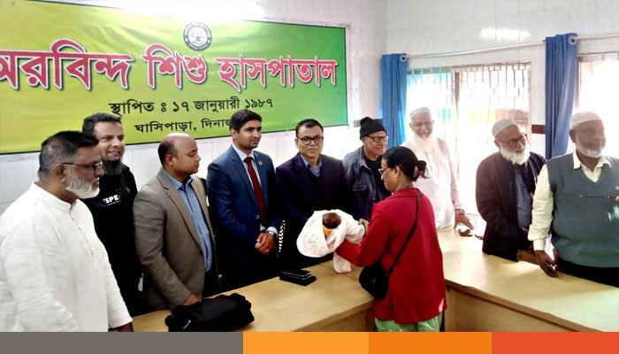 অরবিন্দ শিশু হাসপাতাল কর্তৃপক্ষ এবং কার্যনির্বাহী পরিষদের কর্মকর্তারা সদর উপজলা প্রশাসনের উপস্থিতিতে দিনাজপুর মেডিকেল কলেজ হাসপাতালে ফেলে যাওয়া শিশুটিকে সুস্থ্য করে উপজেলা শিশু কল্যাণ বোর্ডের সিদ্ধান্ত অনুযায়ী নিঃসন্তান দম্পতির নিকট অনুষ্ঠানেকভাবে হস্তান্তর করা হয়েছে।