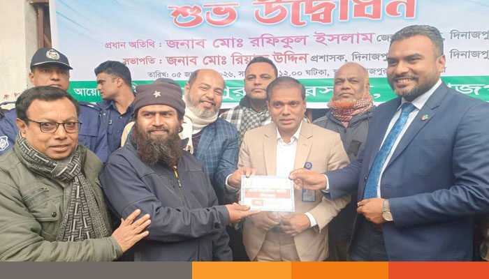 সোমবার (৫ জানুয়ারি ২০২৬) বেলা ১২টায় পৌরভবনে সামনে আয়োজিত এক অনুষ্ঠানে অটোচালকের হাতে ডিজিটাল নম্বর প্লেট তুলে দিয়ে ডিজিটাল নম্বর প্লেট বিতরণ কর্মসূচির আনুষ্ঠানিক উদ্বোধন করেন দিনাজপুর জেলা প্রশাসক মোঃ রফিকুল ইসলাম।