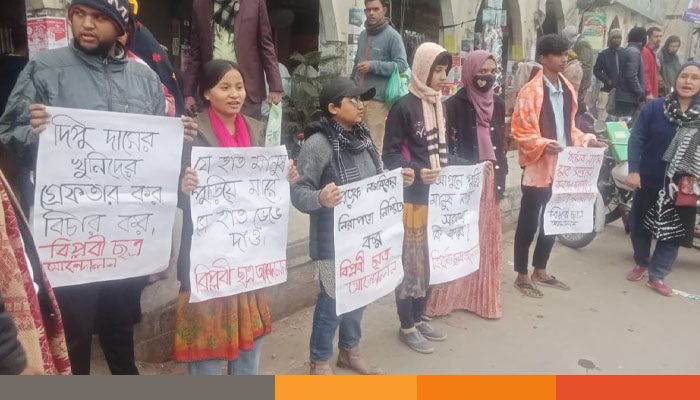 ময়মনসিংহের ভালুকায় পোশাকশ্রমিক দীপু চন্দ্র দাসকে পিটিয়ে হত্যা এবং বস্ত্রহীন করে গাছে ঝুলিয়ে আগুনে পোড়ানোর ঘটনার প্রতিবাদে জয়পুরহাটে বিক্ষোভ মিছিল ও মানববন্ধন করেছে বিপ্লবী ছাত্র আন্দোলন। বুধবার (২৪ ডিসেম্বর) দুপুর ১টায় শহরের জিরো পয়েন্টে এ মানববন্ধন করে সংগঠনটির নেতা কর্মীরা। এর আগে জিরো পয়েন্ট এলাকা থেকে মিছিল বের করে শহরের প্রধান প্রধান সড়ক প্রদক্ষিণ করেন।