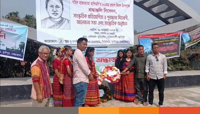 বৃটিশ বিরোধী আন্দোলন তথা টংক আন্দোলনের মহিয়সী নারী হাজংমাতা কমরেড রাশিমণি’র ৮০তম প্রয়াণ দিবস পালিত হয়েছে। শনিবার (৩১ জানুয়ারী) দিনব্যাপি ক্ষুদ্র নৃ-গোষ্ঠীর কালাচারাল একাডেমি, বিভিন্ন হাজং সংগঠন ও বাংলাদেশের কমিউনিস্ট পার্টি (সিপিবি) দুর্গাপুর উপজেলা শাখার আয়োজনে এ দিবস পালিত হয়।