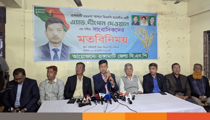 বুধবার (২১ জানুয়ারি) সন্ধ্যায় রাঙামাটি জেলা বিএনপির কার্যালয়ে জেলা বিএনপি আয়োজিত ‘সাংবাদিকদের সঙ্গে মতবিনিময়’ অনুষ্ঠানে দীপেন দেওয়ান এ মন্তব্য করেন।