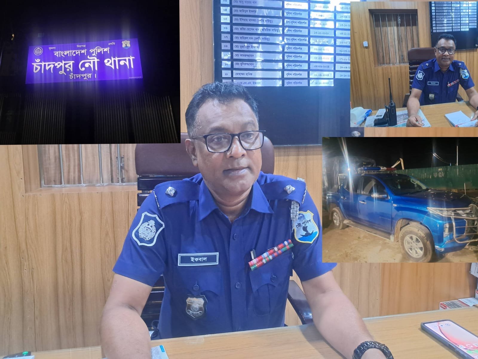 এ বিষয়ে কথা হলে চাঁদপুর নৌ থানার ওসি এ. কে. এম. এস. ইকবাল বলেন, এই থানাটিতে ওসির ব্যবহারের জন্য নতুন করে একটি গাড়ী সংযোজিত হয়েছে। সেটিই বাইরে রাখা। যা আগে কখনো ছিলোনা। আমিই নৌ থানার প্রথম ওসি যে কিনা আইনী কাজে স্থায়ীভাবে অফিসিয়াল গাড়ী ব্যবহারের সুযোগ পেলাম।