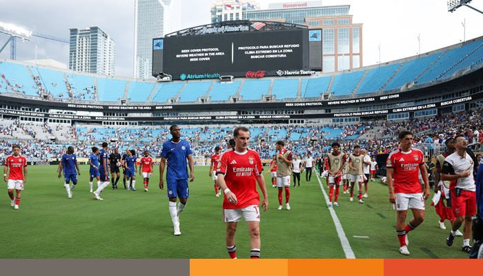 ব্যাংক অব আমেরিকা স্টেডিয়ামে বাংলাদেশ সময় গতকাল দিবাগত রাত ২টায় মুখোমুখি হওয়ার কথা ছিল বেনফিকা ও চেলসির। সে হিসেবে সবমিলিয়ে সেটি শেষ হতো ৪টা থেকে সাড়ে ৪টার মধ্যে। কিন্তু যুক্তরাষ্ট্রের বেরসিক আবহাওয়া প্রতিকূল রূপ নেয় কোনো ঘোষণা ছাড়াই। যা চলমান বিশ্বকাপজুড়ে অনেকবারই দেখা গেছে। নির্ধারিত সময়ের আর মাত্র ৪ মিনিট বাকি থাকতেই বজ্রপাতসহ প্রবল ঝড় শুরু হয়। সাময়িক বিরতি দেওয়া হলেও, সেই অপেক্ষা শেষ হয় প্রায় দুই ঘণ্টা পর।