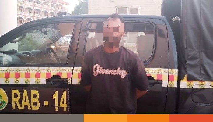শনিবার (১১ এপ্রিল) দুপুর পৌনে ২টার দিকে র্যাব-১৪ এর অধিনায়কের পক্ষে মিডিয়া অফিসার (সিনিয়র সহকারী পরিচালক) প্রেরিত প্রেস বিজ্ঞপ্তির মাধ্যমে এ তথ্য নিশ্চিত করেছেন। গতকাল (শুক্রবার) সন্ধ্যা সোয়া ৬টার দিকে ধনবাড়ি বাসস্ট্যান্ড তাকে গ্রেফতার করা হয়েছে।