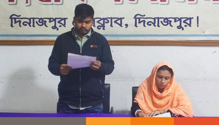 গতকাল বুধবার দুপুরে দিনাজপুর প্রেসক্লাবে এক সংবাদ সম্মেলনে এই অভিযোগ করেন দিনাজপুর জেলা শহরের নিমতলা এলাকার সহদেব কুমার রায়ের ছেলে জয় কুমার রায়। এ সময় তার স্ত্রী উর্মিলা রানী উপস্থিত ছিলেন।