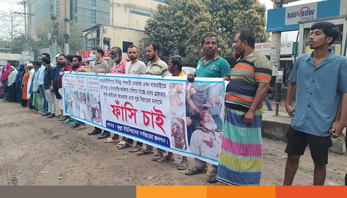 মানববন্ধন শেষে অংশগ্রহণকারীরা ঢাকা-আরিচা মহাসড়কে বিক্ষোভ মিছিল বের করেন এবং অভিযুক্তদের বিচারের দাবিতে স্লোগান দেন।