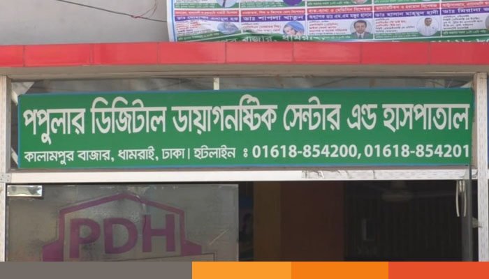 আসা কয়েকজন মিলে তদন্ত শুরু করেন। তদন্তে এর সত্যতা মিললেও এমন ভয়ংকর চিকিৎসা বিভীষিকার ঘটনায় হাসপাতালটির বিরুদ্ধে এখনো কোন আইনি পদক্ষেপ বা ক্ষতিগ্রস্তদের ক্ষতিপূরণ দেয়ার কোন ব্যবস্থা নেয়া হয়নি। নাগরিক টেলিভিশনের প্রায় এক মাসের অনুসন্ধানে উঠে এসেছে ঢাকার ধামরাইয়ের কালামপুর এলাকার পপুলার ডিজিটাল ডায়াগনস্টিক সেন্টার অ্যান্ড হাসপাতালের এমন ভয়াবহ চিকিৎসা ব্যবস্থা।