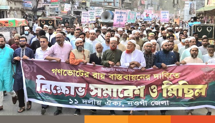 জুলাই জাতীয় সনদ অনুযায়ী রাষ্ট্র সংষ্কারে অনুষ্ঠিত গণভোটের রায় বাস্তবায়নের দাবীতে নওগাঁয় বিক্ষোভ মিছিল ও সমাবেশ অনুষ্ঠিত হয়েছে।