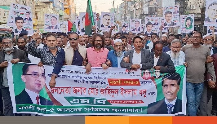 বিএনপির ঘোষিত ৩১ দফা প্রচার এবং নওগাঁ-৫ আসনের বিএনপির মনোনয়ন প্রত্যাশী জাহিদুল ইসলাম ধলুর পক্ষে শোডাউন করেছে তার অনুসারী নেতাকর্মী ও সমর্থকরা।
