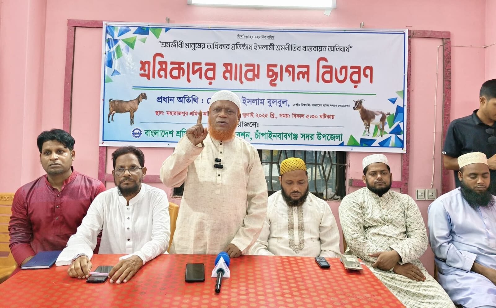 বাংলাদেশ জামায়াতে ইসলামী চাঁপাইনবাবগঞ্জ সদর উপজেলা আমীর ও সদর উপজেলা শ্রমিক কল্যাণ ফেডারেশনের উপদেষ্টা হাফেজ আব্দুল আলীমের সভাপতিত্বে এবং বাংলাদেশ শ্রমিক কল্যাণ ফেডারেশন চাঁপাইনবাবগঞ্জ সদর উপজেলা সভাপতি ফরহাদ আহমেদ সায়িমের পরিচালনায় অনুষ্ঠিত সভায় অন্যান্যের মধ্যে উপস্থিত ছিলেন সদর উপজেলা আমীর হাফেজ আব্দুল আলীম, সদর উপজেলার সেক্রেটারি আব্দুর রহমান, সদর উপজেলা শ্রমিক কল্যাণ ফেডারেশনের সেক্রেটারি সামিউল ইসলাম, মহারাজপুর ইউনিয়ন আমীর হাফেজ আব্দুল আলীম প্রমুখ।