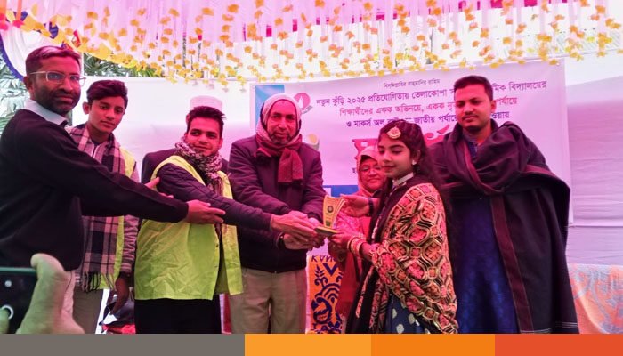 রবিবার ৪ জানুয়ারী দুপুরে কুড়িগ্রাম পৌর শহরের ভেলাকোপা সরকারি প্রাথমিক বিদ্যালয়ে সাংস্কৃতিক অনুষ্ঠান শেষে বিজয়ী ৩ শিক্ষার্থীদের মাঝে সম্মাননা তুলে দেয়া হয়।