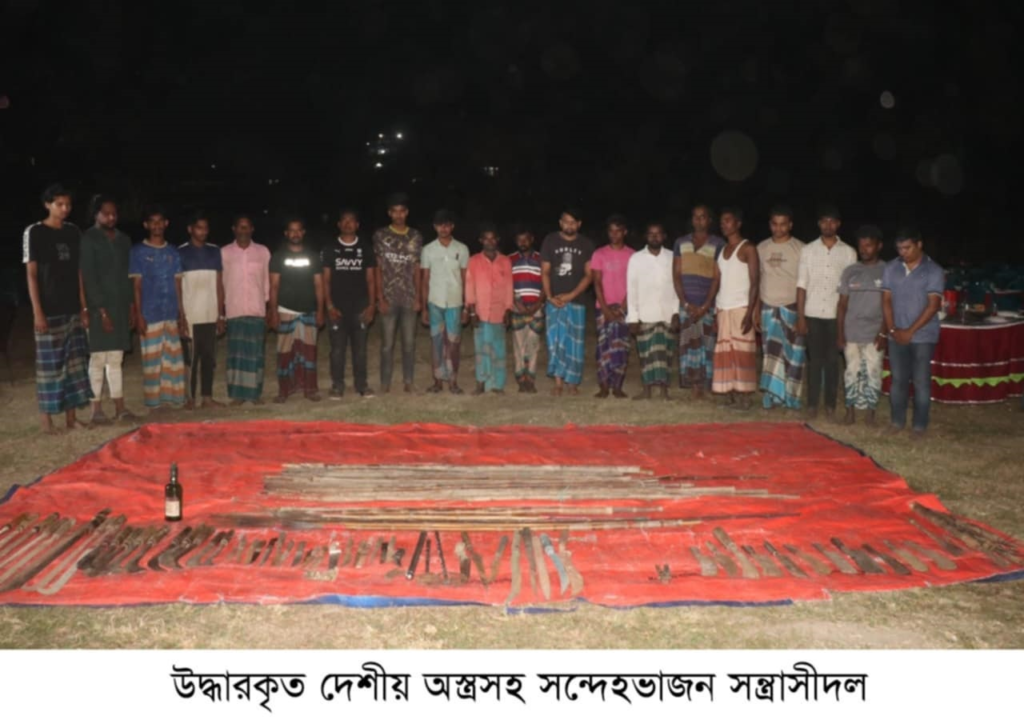 বাংলাদেশ সেনাবাহিনীর ৯৯ কম্পোজিট ব্রিগেড, আর্মি এভিয়েশন, র্যাব, পুলিশ এবং স্থানীয় প্রশাসনের সমন্বয়ে গঠিত টাস্ক ফোর্স গোপন তথ্যের ভিত্তিতে এ অভিযান চালায়। এসময় দেড় শতাধিক ধারালো অস্ত্র, তিনটি মোবাইল ফোন এবং ২০ জন চিহ্নিত সন্ত্রাসী ও সন্দেহভাজন ব্যক্তিকে আটক করা হয়। পরে আটককৃতদের প্রয়োজনীয় জিজ্ঞাসাবাদ এবং আইনি কার্যক্রম সম্পন্নের জন্য সংশ্লিষ্ট এলাকার থানা পুলিশের নিকট হস্তান্তর করা হয়। দেশের সার্বিক আইন-শৃঙ্খলা পরিস্থিতি স্বাভাবিক রাখতে বাংলাদেশ সেনাবাহিনী কর্তৃক এ ধরনের অভিযান অব্যাহত থাকবে বলে জানানো হয়।