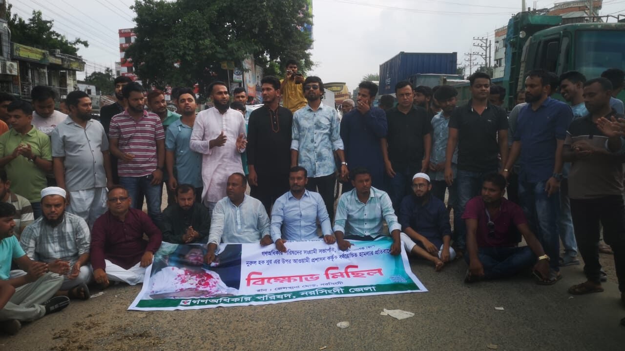 ডাকসুর সাবেক ভিপি ও গণ অধিকার পরিষদের সভাপতি নুরুল হক নুরের ওপর হামলার প্রতিবাদে নরসিংদীতে ঢাকা-সিলেট মহাসড়ক অবরোধ ও বিক্ষোভ মিছিল অনুষ্ঠিত হয়েছে। শনিবার (৩০ আগস্ট) বিকেল ৫টায় ভেলানগর বাজারস্থ গণ অধিকার পরিষদ নরসিংদী জেলা কার্যালয় থেকে এ মিছিল শুরু হয়।