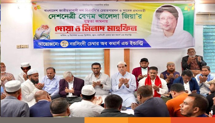 নরসিংদী চেম্বারের উদ্যোগে খালেদা জিয়ার সুস্থতা কামনায় দোয়া মাহফিল