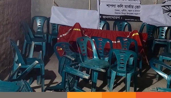 ১১ দলীয় জোট মনোনীত প্রার্থী এস.এম জার্জিস কাদির বাবু জানান, তার নিজ গ্রামে জাতীয় নাগরিক পার্টির নির্বাচনী অফিসে রাতে নির্বাচনী আলোচনা ও কার্যক্রম চলছিল।