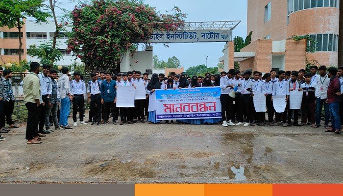 জুনিয়র ইন্সট্রাক্টর পদে ক্রাফট ইন্সট্রাক্টরদের পদোন্নতির হাইকোর্টের রিট বাতিল ও ২০২১ সালের অবৈধ নিয়োগ বাতিলসহ পলিটেকনিক শিক্ষার্থীদের যৌক্তিক ৬ দফা দাবি এবং পলিটেকনিক শিক্ষার্থীদের উপর হামলার প্রতিবাদে নাটোরে মানববন্ধন অনুষ্ঠিত হয়েছে। বৃহস্পতিবার দুপুরে শহরের বড় হরিশপুর এলাকায় সরকারি টেক্সটাইল ইনস্টিটিউটের আয়োজনে এই কর্মসুচি পালিত হয়।