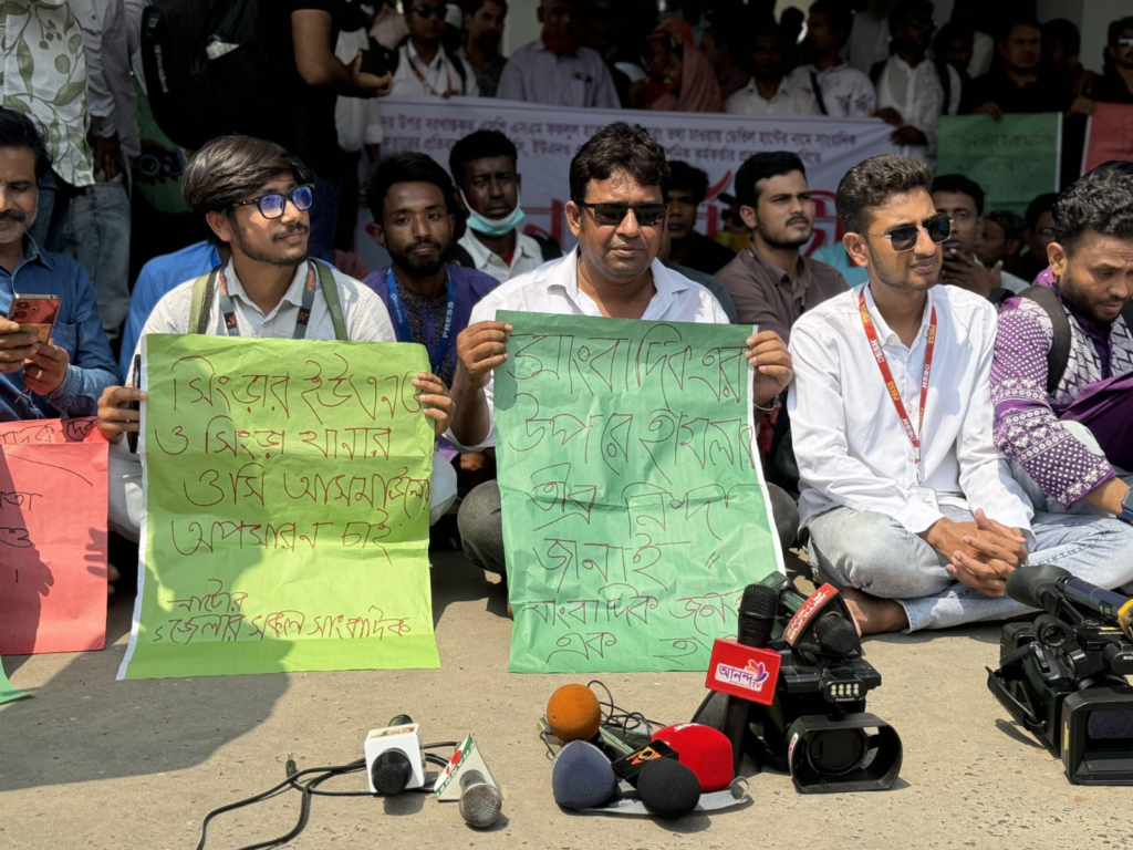 নাটোরে কর্তব্যরত সাংবাদিকদের উপর বরখাস্তকৃত এসপির হামলা এবং সিংড়ায় সমকাল প্রতিনিধিকে গ্রেপ্তারের প্রতিবাদে বিক্ষোভ ও অবস্থান কর্মসূচি পালন করেছেন নাটোর জেলাসহ বিভিন্ন উপজেলায় কর্মরত বিভিন্ন গণমাধ্যমের কর্মীরা।