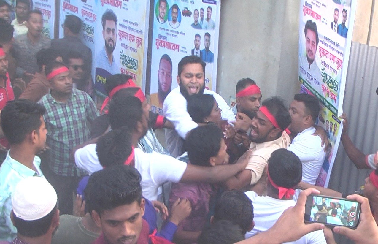 নারায়ণগঞ্জে ভিপি নুরের উপস্থিতিতে গণঅধিকার পরিষদের কর্মীদের মধ্যে হাতাহাতি