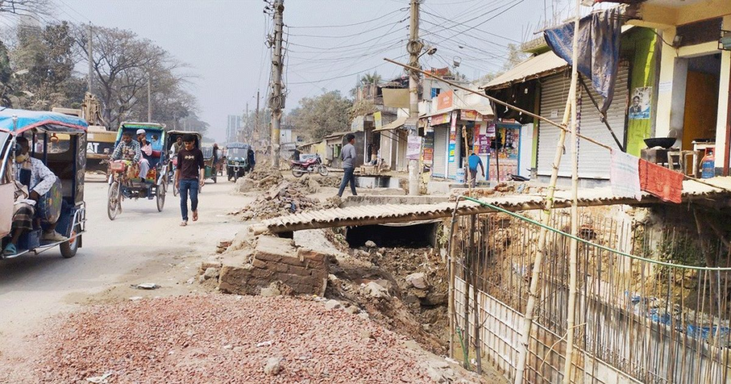 নারায়ণগঞ্জ নগরীতে মূল সড়কে ড্রেন নির্মাণে ধীরগতিতে দুর্ভোগ