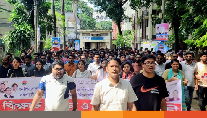 আজ মঙ্গলবার (২ সেপ্টেম্বর) দুপুর দেড়টায় বিশ্ববিদ্যালয়ের কাঁঠালতলা থেকে বিক্ষোভ মিছিলটি শুরু হয়ে ভিসি ভবনের সামনে অবস্থান কর্মসূচিতে রূপ নেয়।