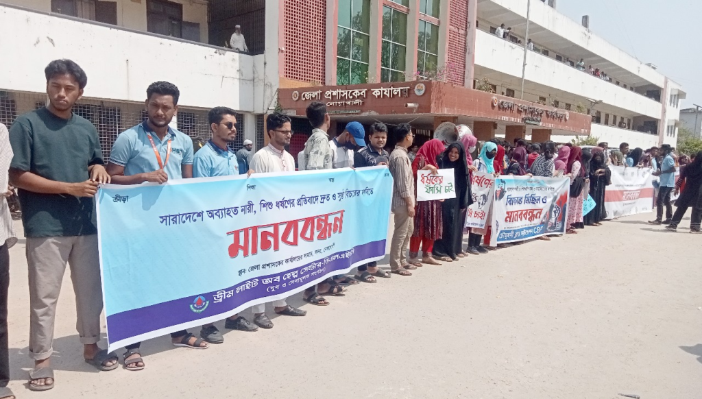 দেশব্যাপী নারী-শিশু ধর্ষণসহ সকল প্রকার সহিংসতার প্রতিবাদে এবং বিচারের দাবিতে বিক্ষোভ, মাববন্ধন ও সমাবেশের মধ্যদিয়ে উত্তাল হয়ে ওঠেছে নোয়াখালী।