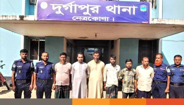 নেত্রকোনার দুর্গাপুর উপজেলায় নাশকতার চেষ্টার অভিযোগে আওয়ামী লীগের ছয় নেতাকর্মীকে গ্রেফতার করেছে পুলিশ। বৃহস্পতিবার (১৩ নভেম্বর) দুপুরে গ্রেফতারকৃতদের আদালতে প্রেরণ করা হয়েছে। এরআগে গতকাল বুধবার বিকেলে ও দিবাগত রাতে উপজেলার বিভিন্ন এলাকা থেকে তাদেরকে গ্রেফতার করা হয়।