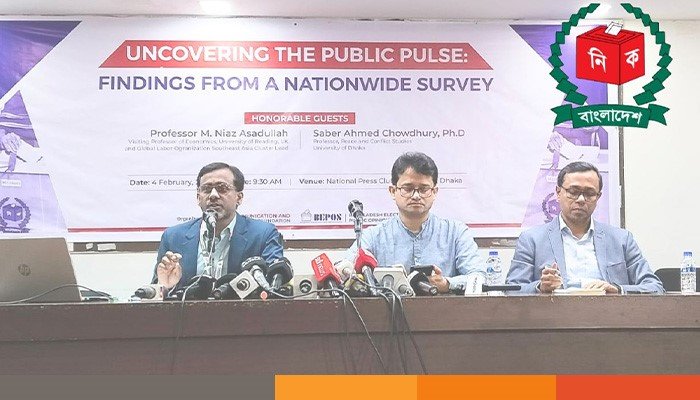 বুধবার (৪ ফেব্রুয়ারি) রাজধানীর জাতীয় প্রেসক্লাবের তফাজ্জল হোসেন মানিক মিয়া হলে ‘আনকাভারিং দ্য পাবলিক পালস: এ নেশনওয়াইড সার্ভে’ শীর্ষক এক গবেষণা প্রতিবেদনে এসব তথ্য জানানো হয়।
