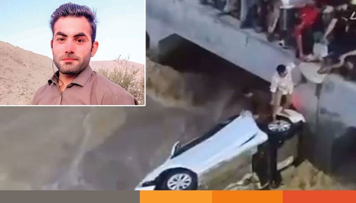 কোনো দ্বিধা না করে শাহজাদ খান (ভিডিওতে লাল কুর্তা পরা) পানিতে অর্ধডুবন্ত গাড়িটির ওপর লাফিয়ে ওঠেন। প্রথমে পা দিয়ে কাঁচ ভাঙার চেষ্টা করে ব্যর্থ হন। পরে পাথর ব্যবহার করে কাঁচ ভেঙে ফেলেন।