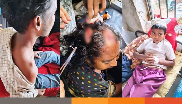পরে স্থানীয়দের সহায়তায় রক্তাক্ত ও গুরুতর আহত অবস্থায় চারজনকে উদ্ধার করে কলমাকান্দা উপজেলা স্বাস্থ্য কমপ্লেক্সে ভর্তি করা হয়। সংযুক্ত ছবিতে আহত নারী ও শিশুর মাথা এবং শরীরে ধারালো অস্ত্রের গভীর ও ভয়াবহ ক্ষতের রয়েছে।