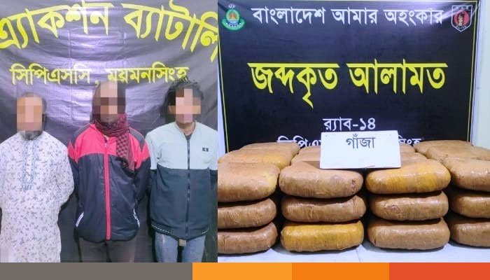 নেত্রকোনায় ৭২ কেজি গাঁজাসহ ৩ মাদক কারবারি গ্রেফতার