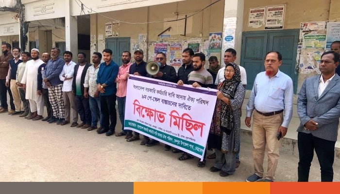 বক্তারা বলেন, “দীর্ঘদিন ধরে আমরা ন্যায্য বেতন কাঠামোর দাবি জানিয়ে আসছি, কিন্তু সরকার এখনো ৯ম পে-স্কেল কার্যকর করেনি। বর্তমান বাজারে দ্রব্যমূল্যের লাগামহীন ঊর্ধ্বগতিতে সাধারণ কর্মচারীদের জীবনযাত্রা এখন দুর্বিষহ হয়ে উঠেছে।”