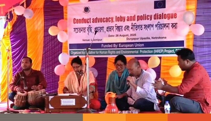 নেত্রকোনার দুর্গাপুরে প্রতিবন্ধী কমিউনিটি সেন্টার (চঈঈ) এর আয়োজনে মানবাধিকার ও পরিবেশ সুরক্ষা প্রকল্পের আওতায় পরিবেশ সচেতনতা বিষয়ক এক বিশেষ অনুষ্ঠান অনুষ্ঠিত হয়েছে। মঙ্গলবার বিকেলে দুর্গাপুর ইউনিয়নের সীমান্তবর্তী লক্ষীপুর গ্রামে গ্রামীণ ঐতিহ্যবাহী জারিগানের সুরে ও আলোচনার মাধ্যমে স্থানীয় জনগণকে পরিবেশ রক্ষায় উদ্বুদ্ধ করা হয়।