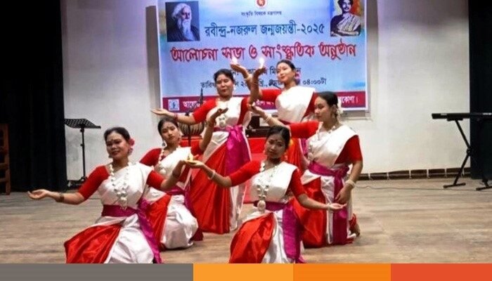 আলোচনা শেষে কালচারাল একাডেমির শিল্পীরা রবীন্দ্রনাথ ঠাকুর ও কাজী নজরুল ইসলামের বিখ্যাত সব গান এবং গানের সঙ্গে নৃত্য ও আবৃত্তি পরিবেশন করেন।