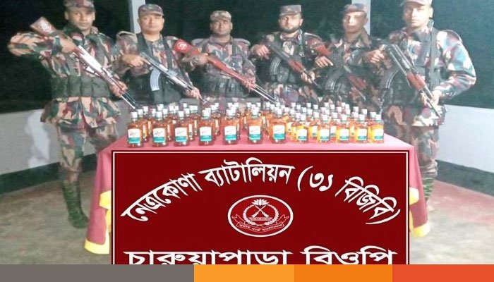 নেত্রকোনা ব্যাটালিয়ন কর্তৃক সীমান্ত থেকে ভারতীয় মদ জব্দ