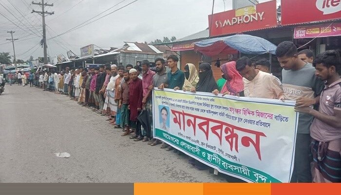 শুক্রবার (৮ আগস্ট) দুপুরে উপজেলার ভূঁইয়ার হাট বাজারে এই মানববন্ধন ও বিক্ষোভ মিছিল অনুষ্ঠিত হয়। এর আগে বৃহস্পতিবার (০৭ আগস্ট) দিবাগত গভীর রাতে আবু বক্কর সিদ্দিক মিজান মাঝিকে তাঁর নিজ বসত ঘর থেকে কোস্ট গার্ডের সদস্যরা তুলে নেওয়ার অভিযোগ ওঠে।
