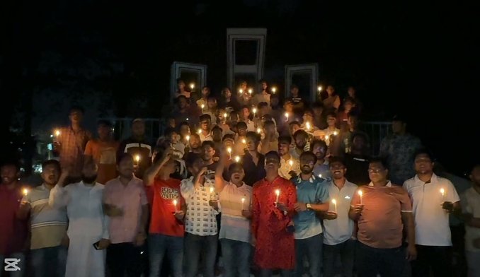 সোমবার রাত ৯টায় নোয়াখালী জেলা শহর মাইজদী কেন্দ্রীয় শহীদ মিনারে প্রদীপ জ্বালিয়ে সমবেত কন্ঠে জাতীয় সংগীত পরিবেশন করে ছাত্রদল।