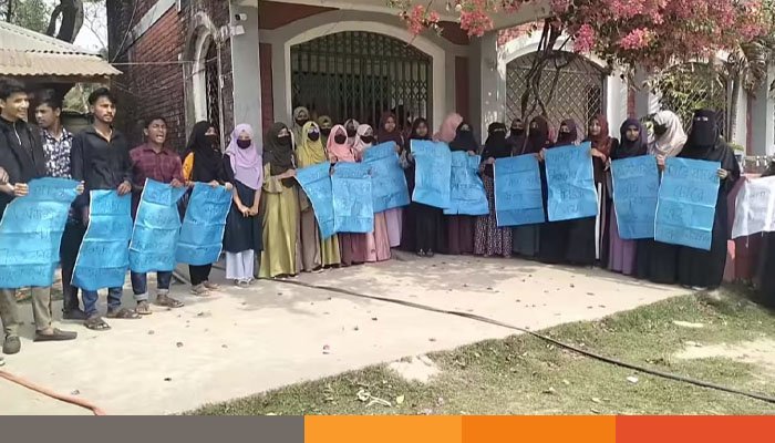 বৃহস্পতিবার সকালে শিক্ষার্থীরা কলেজ ক্যাম্পাসে জড়ো হয়ে বিক্ষোভ মিছিল করেন এবং পরে কলেজের প্রধান ফটকে তালা ঝুলিয়ে প্রতিবাদ কর্মসূচি পালন করেন। এ সময় তারা ‘অতিরিক্ত ফি বন্ধ করতে হবে’, ‘অধ্যক্ষের অপসারণ চাই’সহ বিভিন্ন স্লোগান দেন।