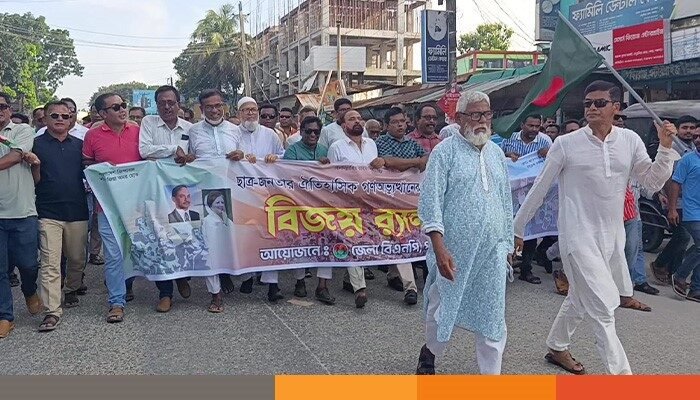 বিজয় র্যালি উদ্বোধন করেন জেলা বিএনপির আহ্বায়ক জাহিরুল ইসলাম কাচ্চু।