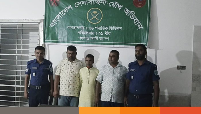 অভিযানে আটক হন— গোলাম মোস্তফার ছেলে মনির হোসেন মনু (৫৪), মাহবুব আলমের ছেলে রুবেল (৪৯) এবং আব্দুল মজিদের ছেলে মাসুদ রানা (৪৫)। তারা সবাই পঞ্চগড় পৌরসভার বাসিন্দা। ঘটনাস্থল থেকে জব্দ করা হয় ৬,৫২০ টাকা নগদ, ছয় সেট তাসের কার্ড এবং তিনটি মোবাইল ফোন।
