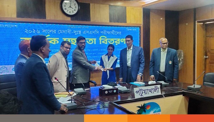 বৃহস্পতিবার বিকেলে পটুয়াখালী জেলা প্রশাসক সম্মেলন কক্ষে আয়োজিত অনুষ্ঠানে প্রধান অতিথি হিসেবে উপস্থিত থেকে অতিরিক্ত জেলা ম্যাজিস্ট্রেট তারেক হাওলাদার শিক্ষার্থীদের হাতে আর্থিক সহায়তা তুলে দেন।