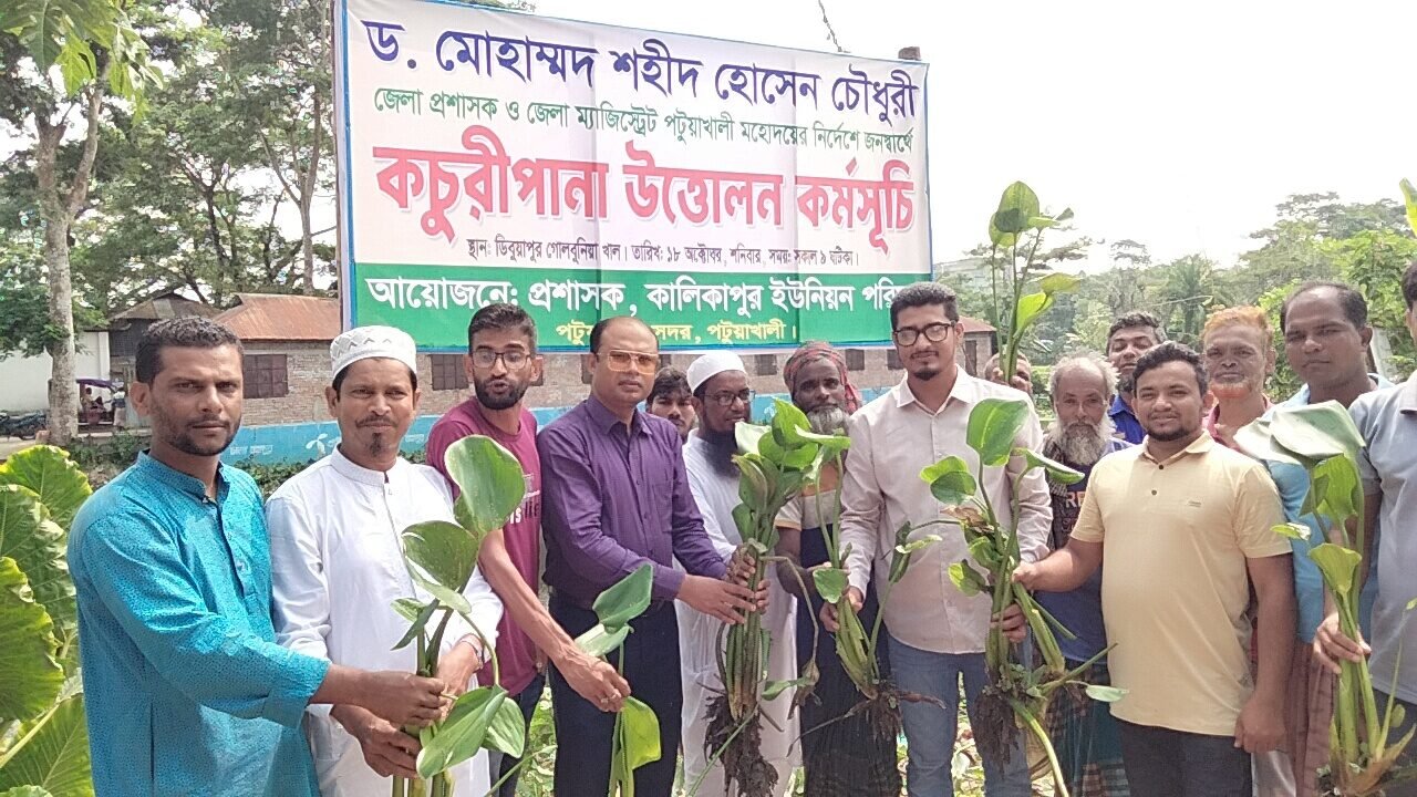 পটুয়াখালী সদর উপজেলার কালিকাপুর ইউনিয়নের ডিবুয়াপুর গোলবুনিয়া খালের ৭ কিলোমিটারের কচুরিপানা পরিষ্কার কার্যক্রমের উদ্বোধন করা হয়েছে।