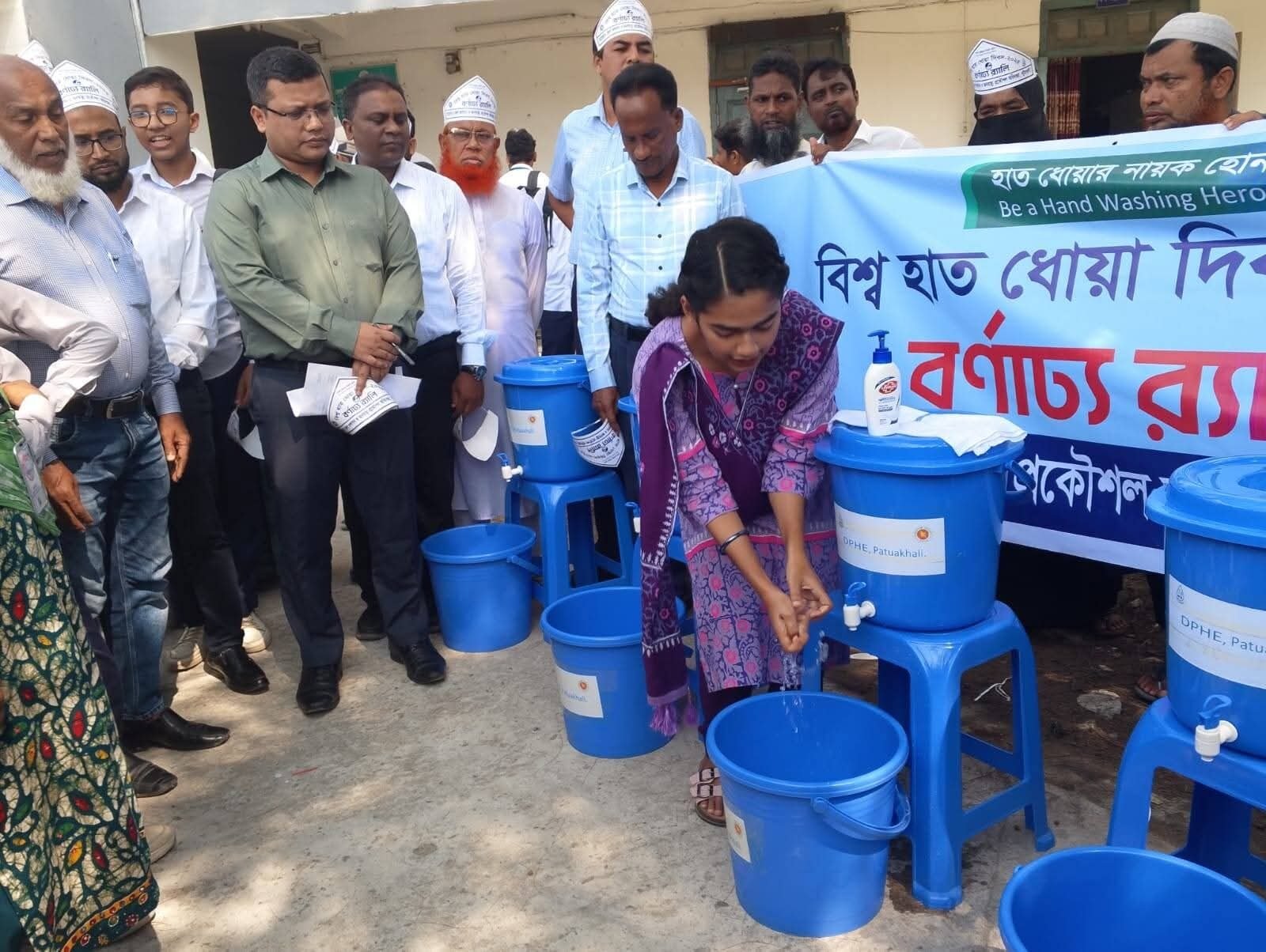 “হাত ধোয়ার নায়ক হোন” এ শ্লোগান নিয়ে বর্ণাঢ্য র্যালী ও আলোচনা সভা এবং শিক্ষার্থীদেরকে হাত ধোয়ানো শিখানোর মধ্যদিয়ে পটুয়াখালীতে বিশ্ব হাতধোয়া দিবস পালিত।