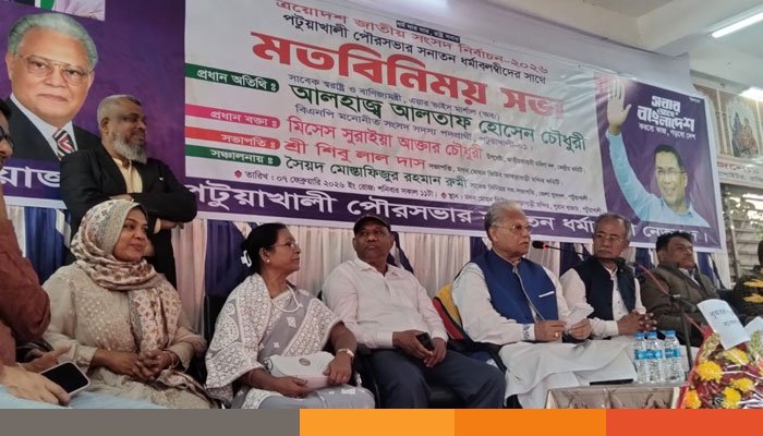 পটুয়াখালী-১ আসনে ধানের শীষের সমর্থনে পৌরসভার সনাতন ধর্মাবলম্বীদের সাথে মতবিনিময় সভা